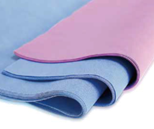 ダブルラップは青とピンクの不織布を重ね、破れやピンホールを迅速に確認可能